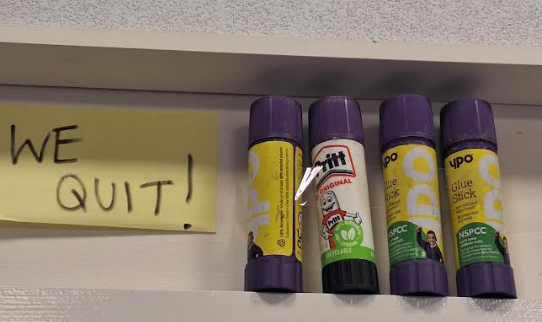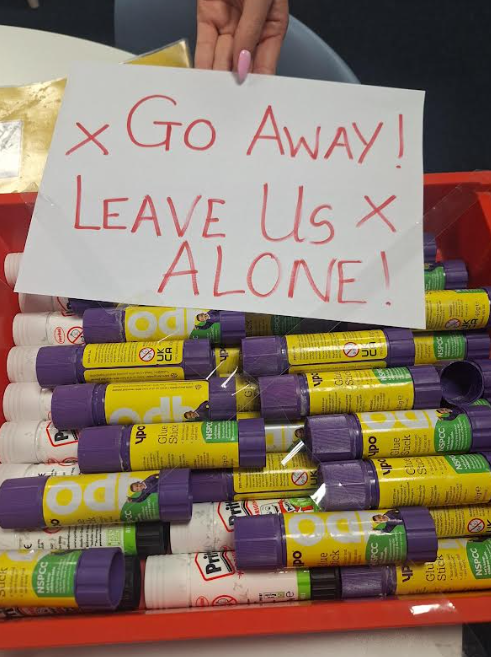 When the children arrived in school, they found that all the glue sticks were on strike! We had to persuade them to come back!
